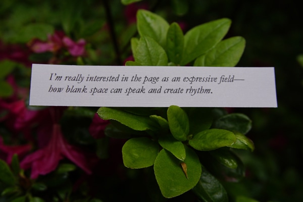 Elizabeth Robinson, “Touch the Donkey Supplement #29: seven questions for Elizabeth Robinson,” Touch the Donkey Blog June 2015.