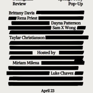 We’re excited to partner up with the Salish Sea Poetry Festival during National Poetry Month to take part in their April poetry crawl! Find us at Stone’s Throw Brewery in Fairhaven on April 23rd at 5:30pm! We’ll be featuring readings by former contributors Rena Priest, Brittany Davis, Dayna Patterson, and Taylar Christianson as well our …